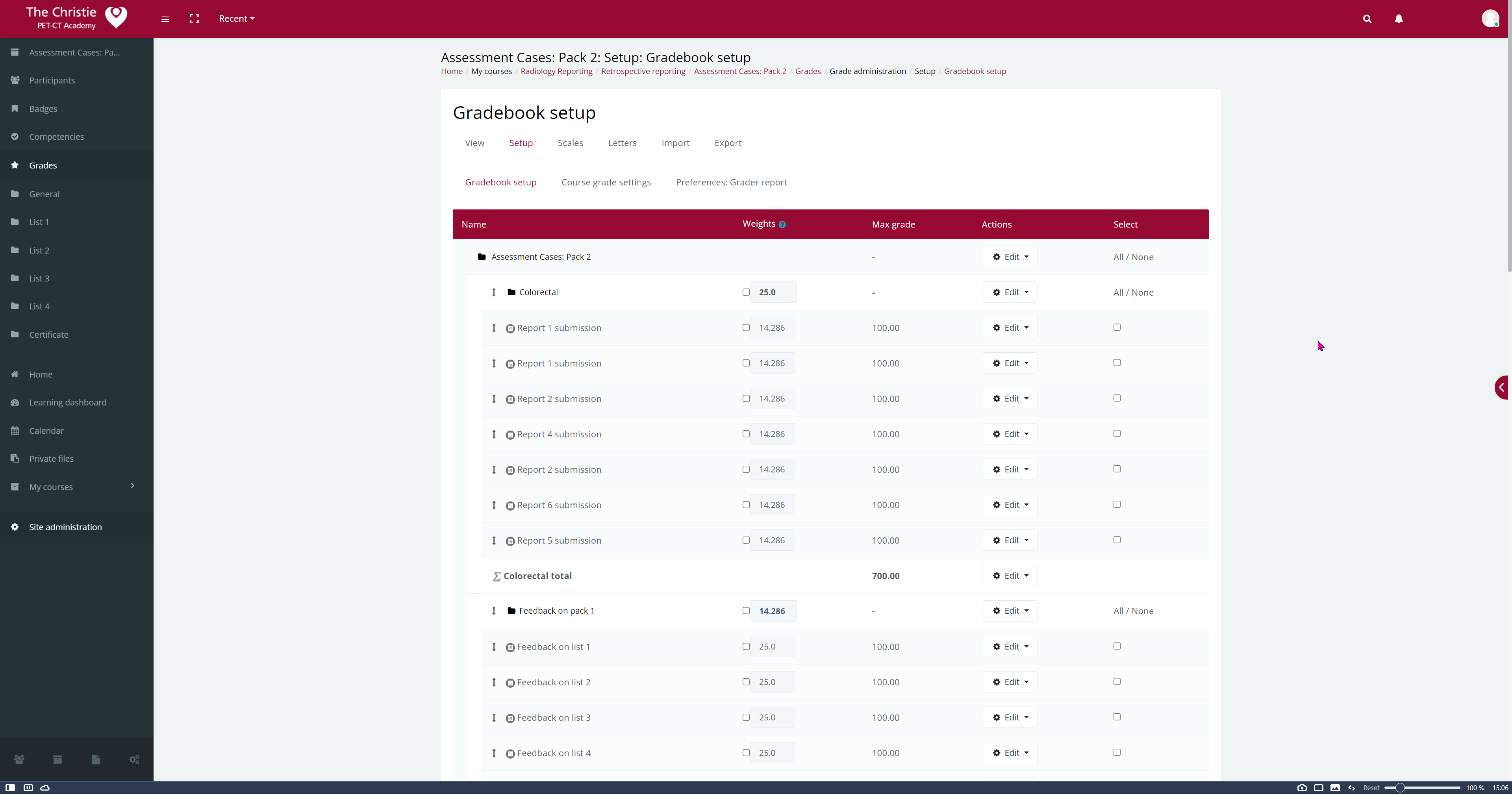 One of the main projects I worked on at the Christie Hospital was the national PET/CT training contract, and in particular training for radiologists. One of the challenges we faced was in developing a robust grading system to enable us to accredit radiologists to report PET/CT scans. The solution I developed used inbuilt Moodle features, so did not require any additional expenditure on plug-ins or other systems.